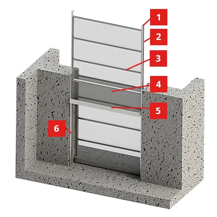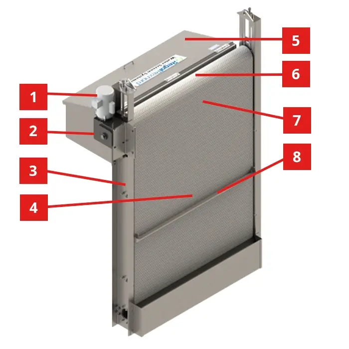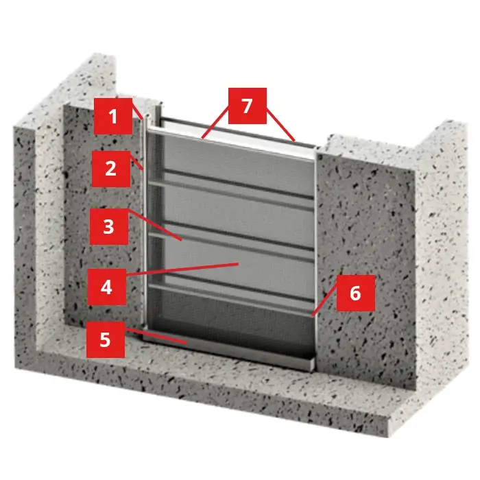 - Sistema de filtración fijo compuesto por un marco estructural y malla tejida.